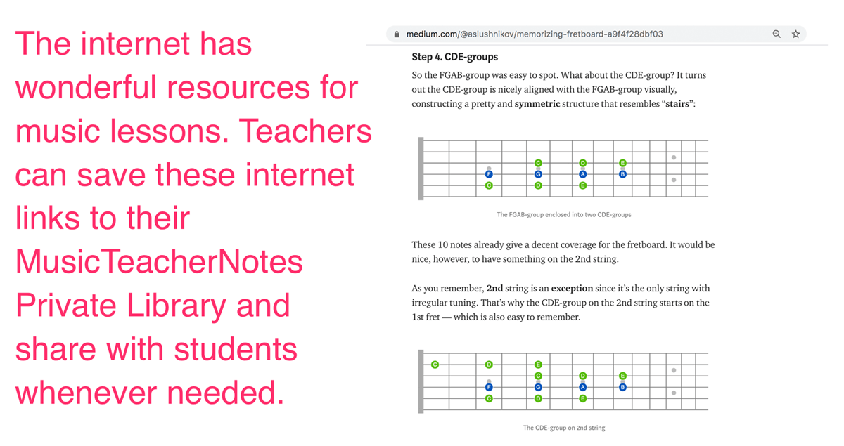 YouTube has countless videos demonstrating musical skills, songs, and techniques. If a video reinforces what you teach in lessons, you can save it to your Private Library and share it directly with students.